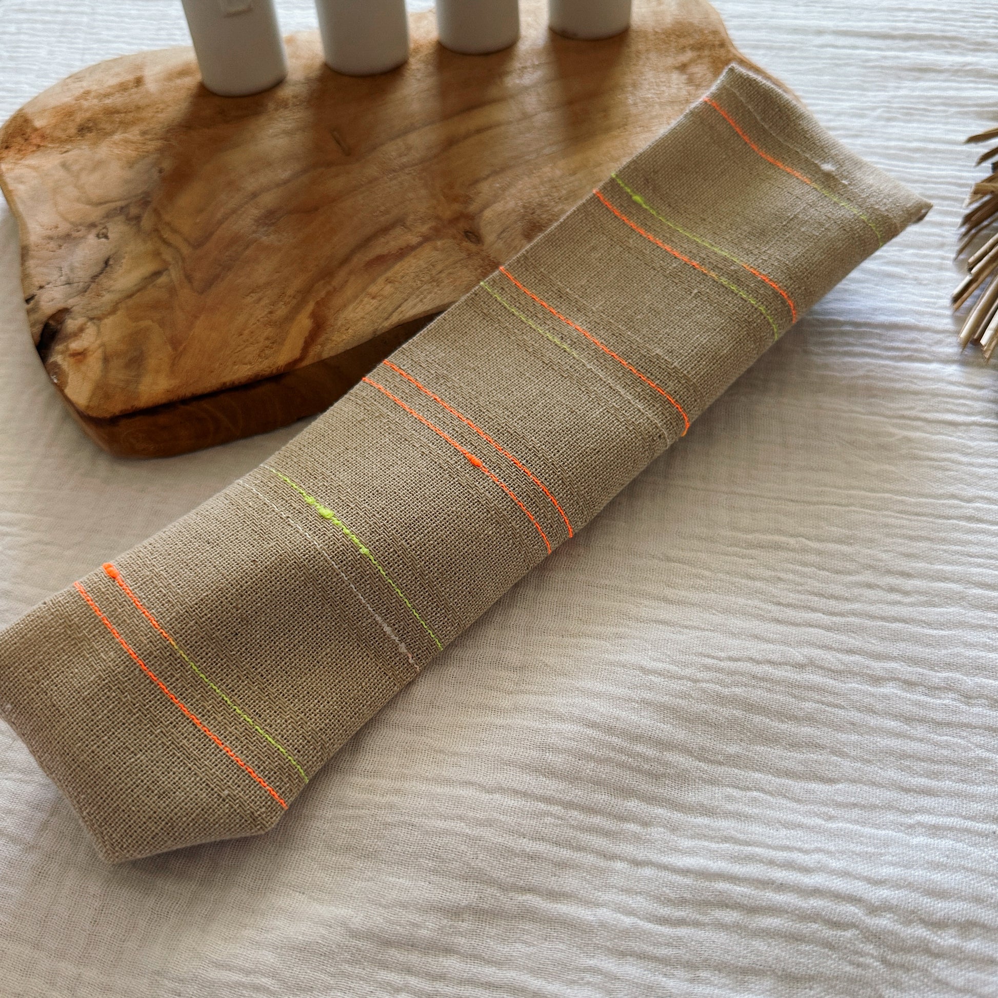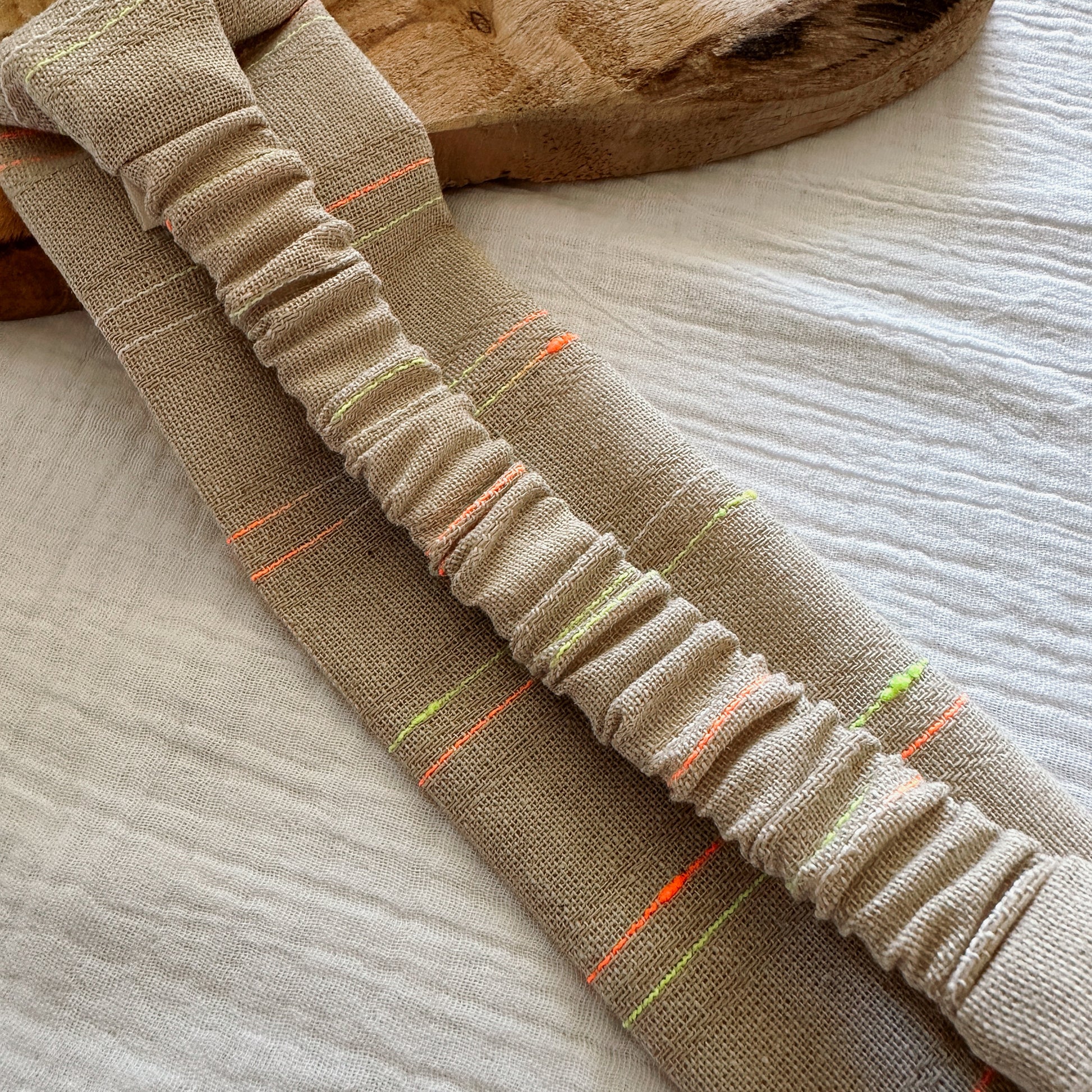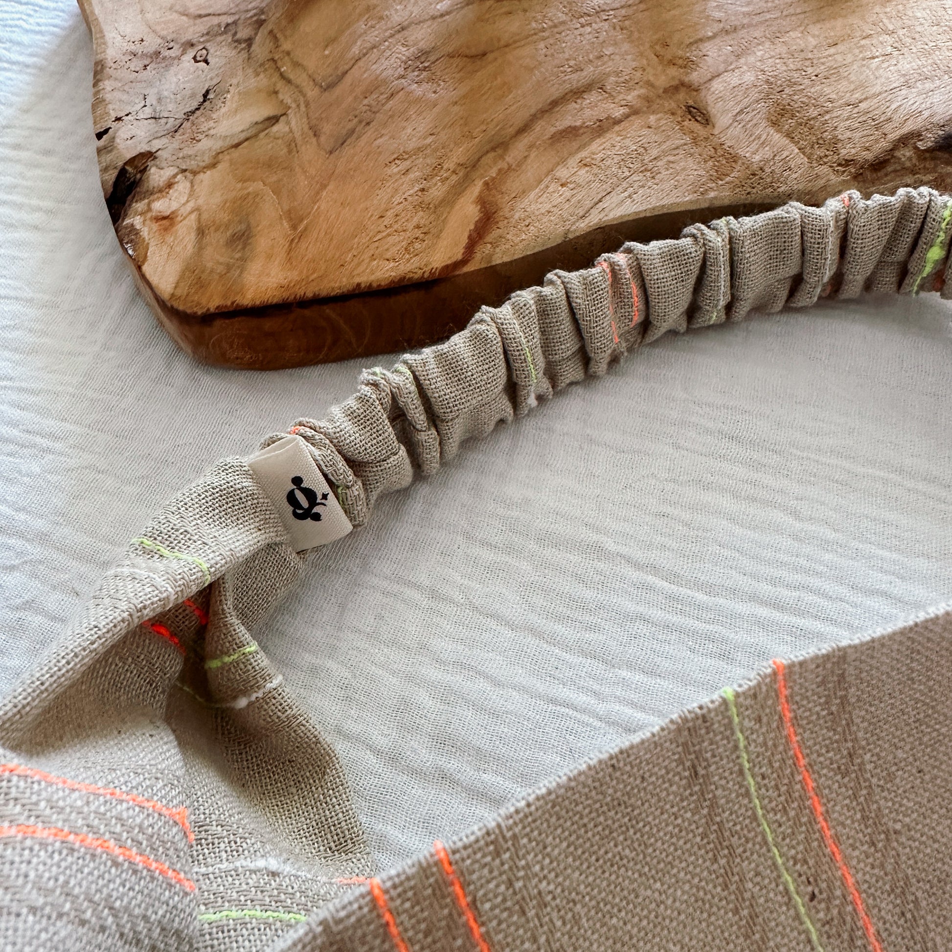 Nos bandeaux sont créés à partir de chutes de tissu upcyclées, offrant ainsi une démarche éco-responsable. Chaque piÚce est soigneusement confectionnée à la main dans notre atelier en Provence.