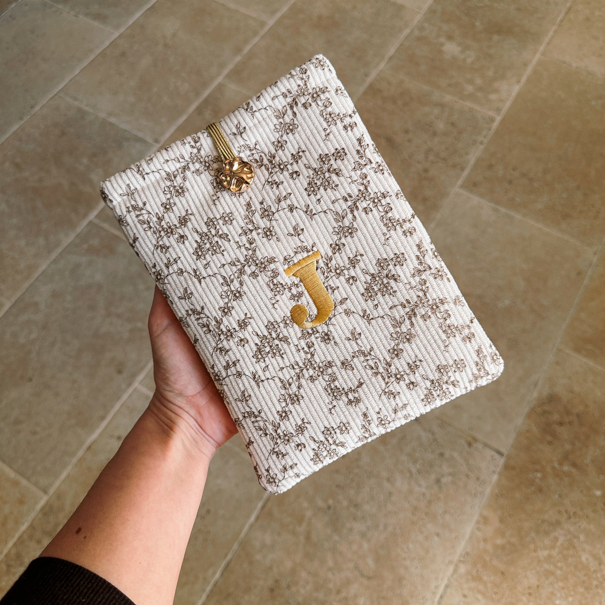 Si vous choisissez un modèle avec une initiale personnalisée, n’hésitez pas à me contacter : celle-ci sera brodée à la commande en fil doré.