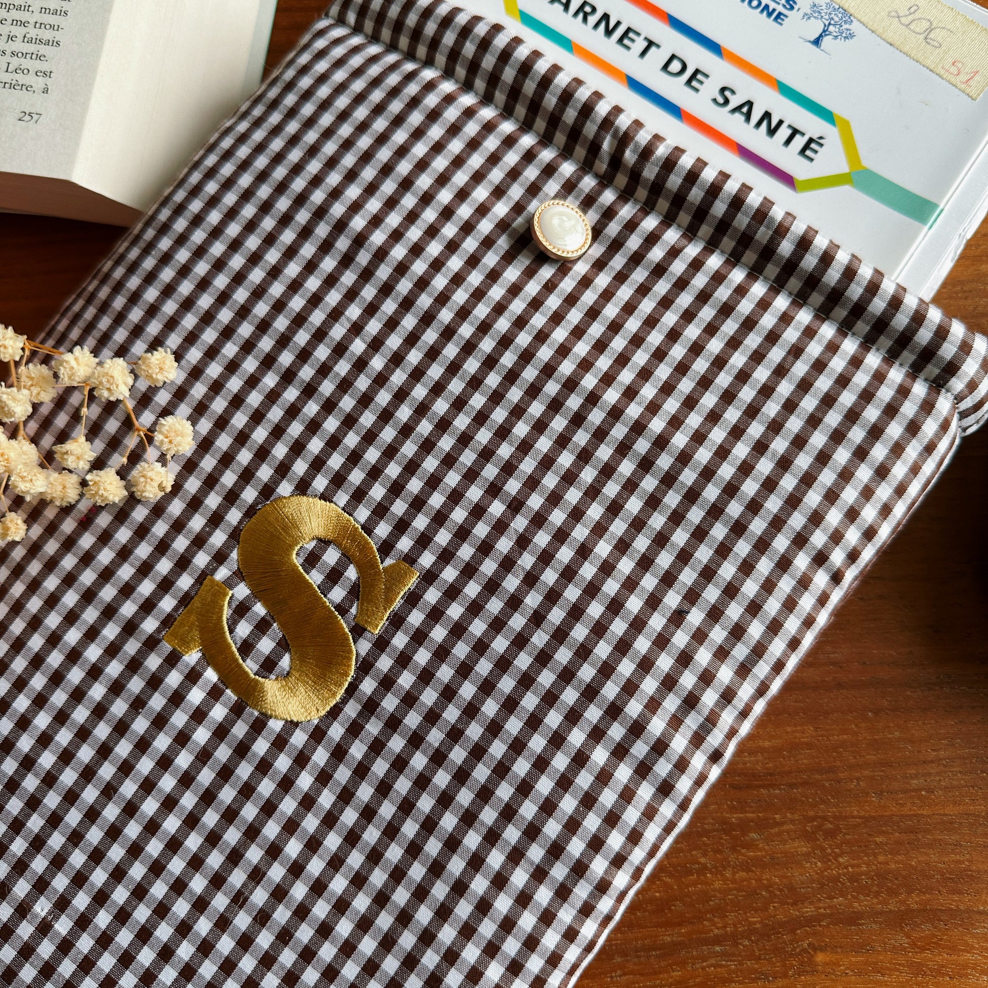 Si vous choisissez un modèle avec une initiale personnalisée, n’hésitez pas à me contacter : celle-ci sera brodée à la commande en fil doré.